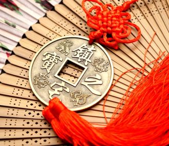 Монета с двойной кистью (иероглиф наружу - защита в пути и благополучное возвращение) L = 28 см. d = 6 см.